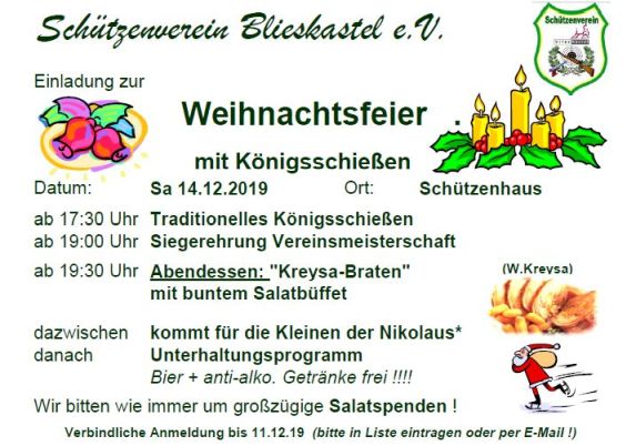 Schützenverein Blieskastel e.V. - Rückblick Weihnachtsfeiern